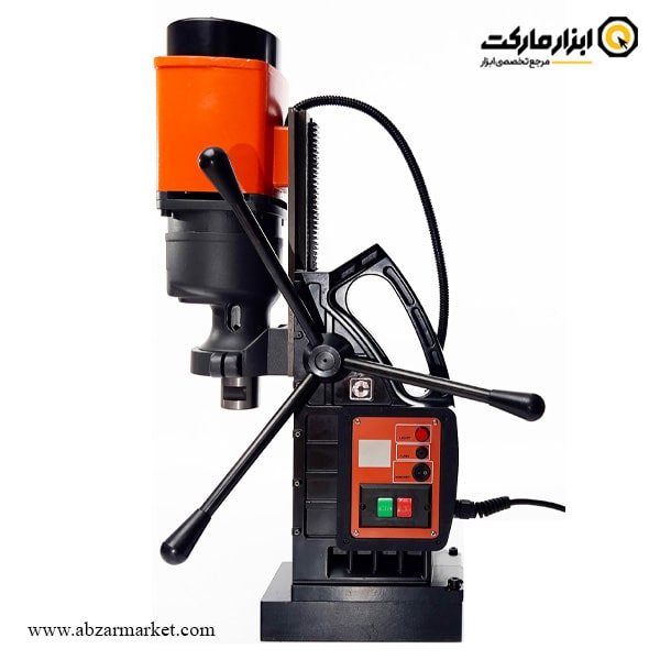 کنترل پنل نارنجی رنگ دستگاه در قسمت کناری آن بدنه آن قرار گرفته است و شامل کلیدهای چراغ، خاموش/روشن کردن مگنت و خاموش/روشن کردن دریل است. از آنجایی که پیشران این محصول از نوع دستی است، کاربران با کمک اهرم سه شاخ نصب شده در کنار دستگاه میتوانند با دقت کامل دریل را در طول محور ریل حرکت دهند. تعادل وزنی مناسب با دسته حمل مخصوص، جابجایی و استفاده از این دستگاه را در شرایط مختلف آسان میکند.