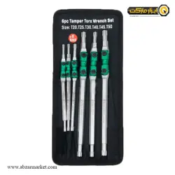 مجموعه آچار آلن ستاره ای جانزوی بازویی 6 عددی مدل H08W106S با کیفیت بالا یکی از بهترین انتخاب ها برای تمامی کاربران است. تکنولوژی و طراحی نسبتا جدید بازویی این نوع از آچارها باعث می شود تا باز و بسته کردن پیچ ها در مکان هایی خاص و فضاهایی بسیار محدود که هیچکدام از آچارهای آلن استاندارد و معمولی و همینطور جغجغه و دسته T که به شما اجازه مانور زیاد نمی دهد را با کمک این مدل به راحتی انجام دهید. در مدل های بازویی بعد از نیم دور چرخش، می توانید بسیار ساده و بدون برداشتن سر ستاره ای آلن از روی پیچ، بازوی آچار را 180 درجه به سمت مخالف ببرید و کار باز و بسته کردن را با سرعت بالا انجام دهید.
