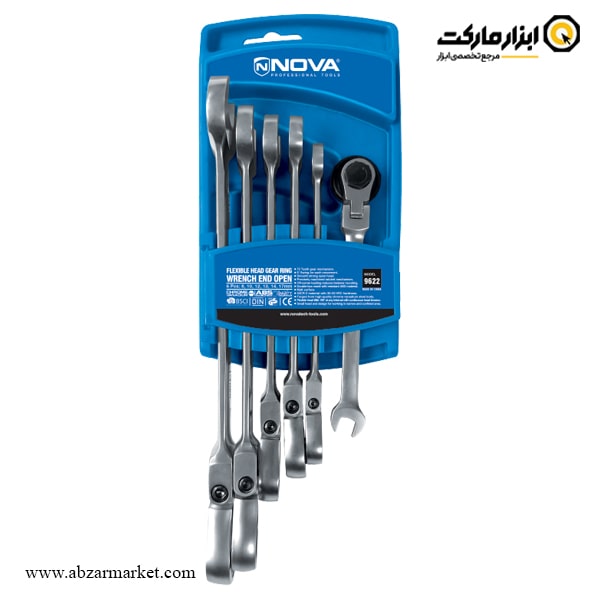 ست آچار یکسر تخت یکسر رینگ جغجغه نووا 6 عددی تاشو مدل 9622