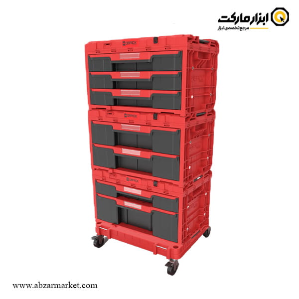 این مدل جعبه ابزار طبقاتی برند Qbrick System دارای 3 جعبه ابزار و یک صفحه چرخ دار است که در مجموع 7 طبقه کشو به شکل ارگانایزر کوچک و بزرگ و با مشخصات فنی زیر ارائه میدهد: