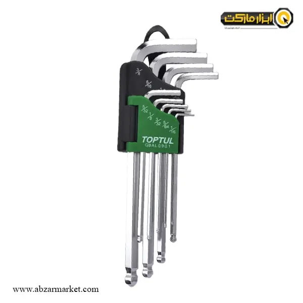 معرفی و مشخصات آچار آلن سر گرد اینچی تاپ تول کارتی بلند 9 عددی مدل GBAL0901